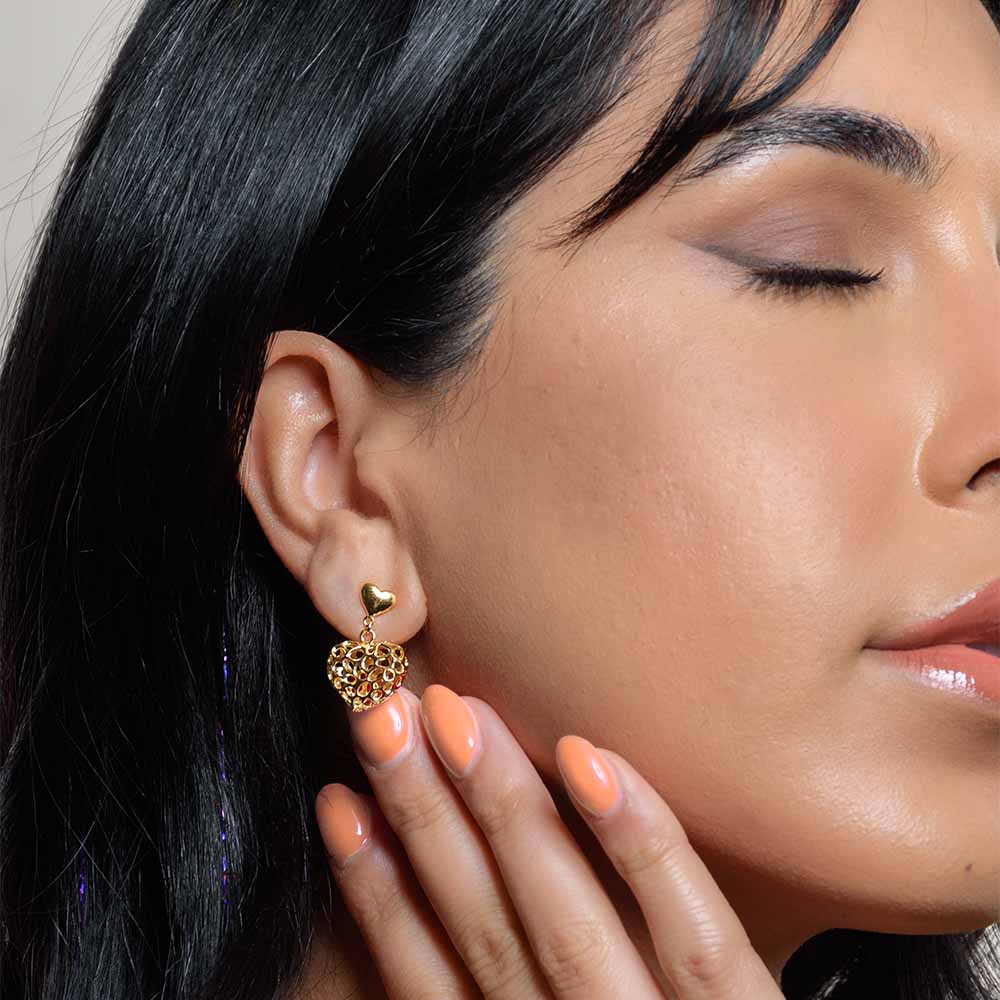 Delightful heart drop earrings for the people who love love! A bestseller from our Amore Heart Collection, these feature Rachel's incredible lattice work on the drops. Available in both gold and silver tones, these are perfect for every day and every style.