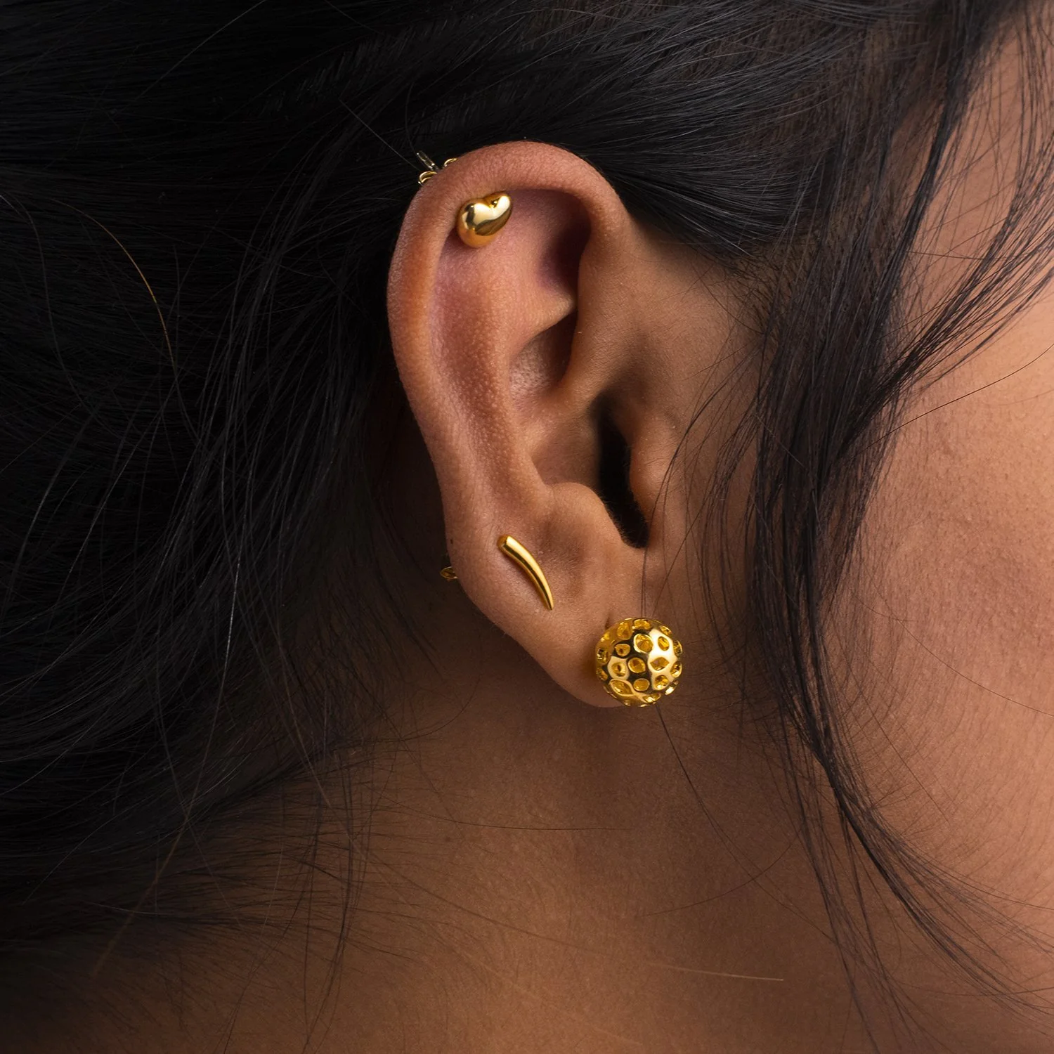Simply stunning solid mini silver stud earrings that can be worn with any outfit. Small size allows them to be worn both as the centre earring or along other piercings. Ballooned shape offers them excellent shine. Wear them alone or pair with other stacking earrings, these are versatile every day choice.