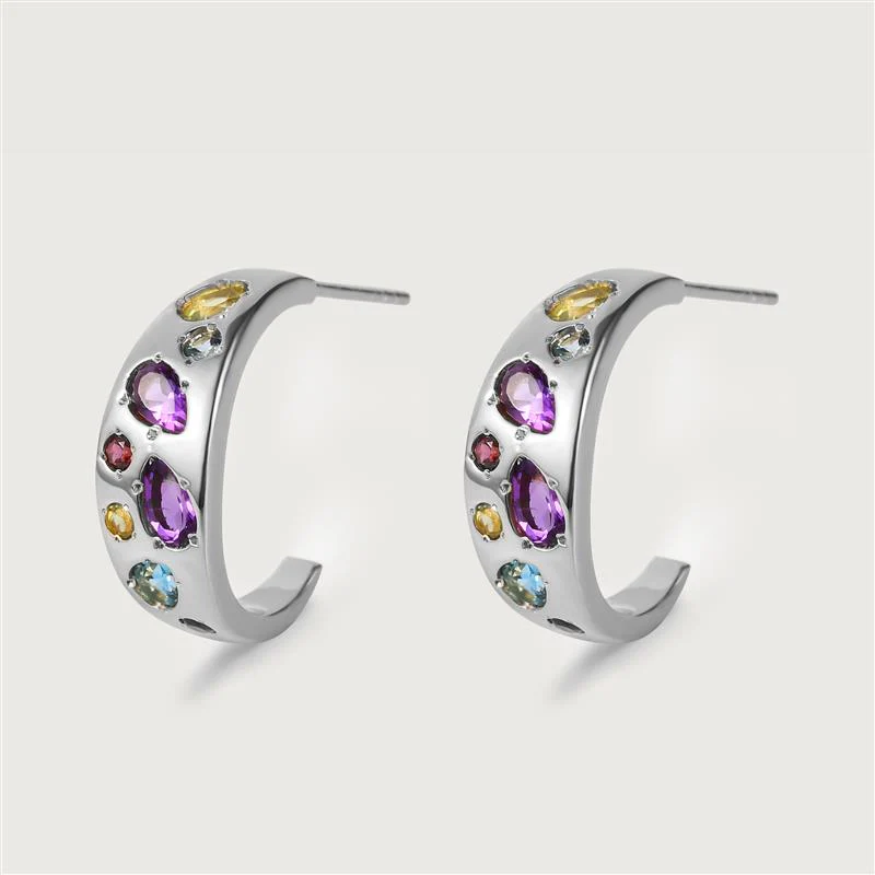 Introducing a phenomenal new collection so sweet, that it'd give you a sugar rush! Shop our Candy Multi Gemstone Huggie Hoops, studded with AAA grade natural genuine stones, such as Rhodolite garnet, Swiss blue topaz, peridot, and African amethyst.