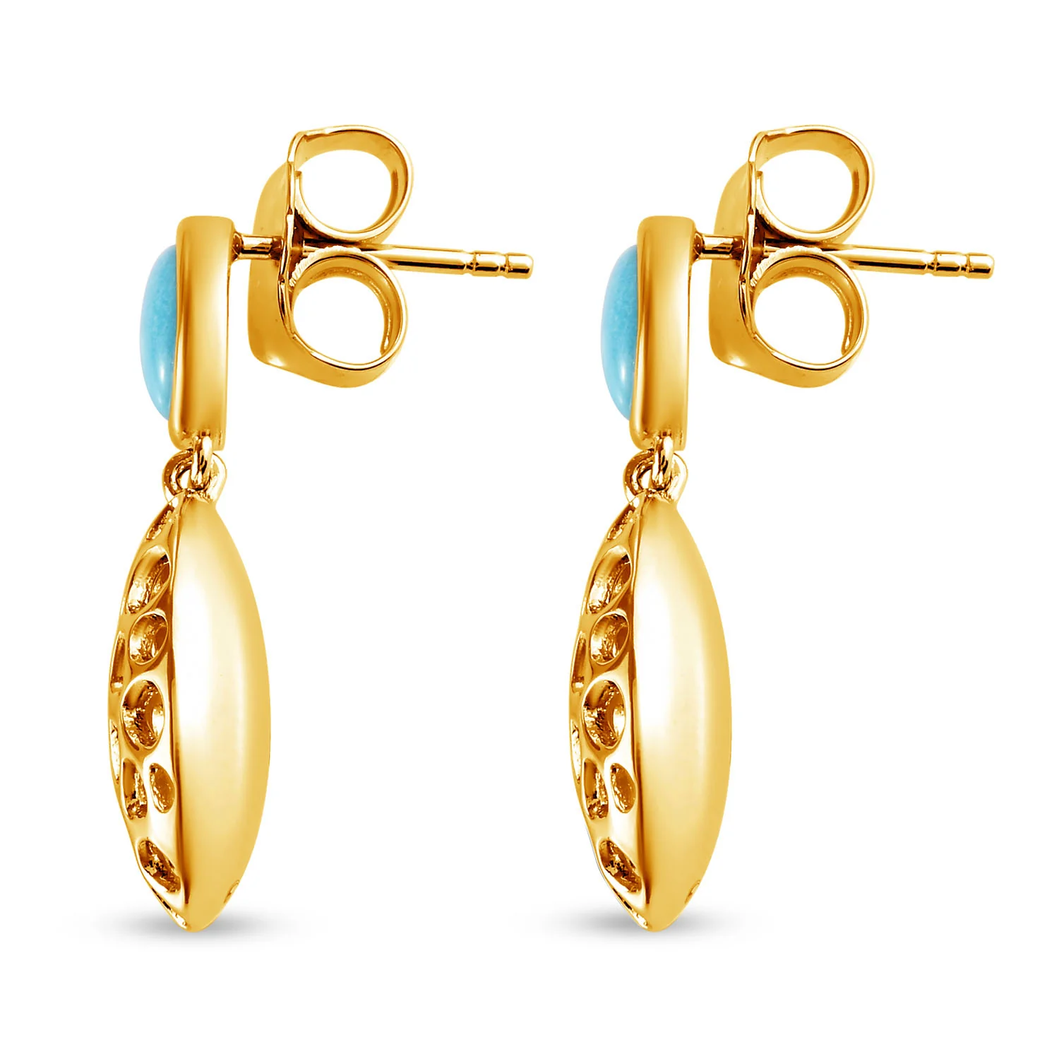 A small design to go a long way. These pebble drop earrings feature Rachel Galley's signature latticework design. The dangling drops move and shimmer with your movement, while the post is studded with an oval Arizona Sleeping Beauty Turquoise.