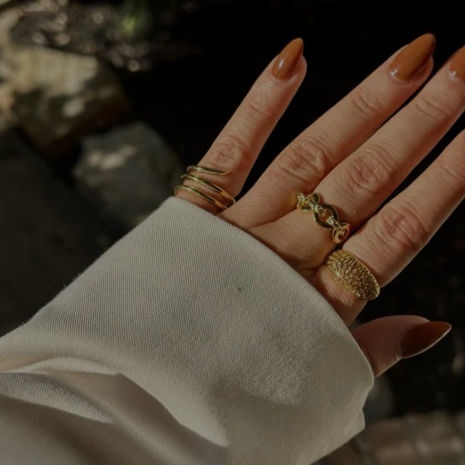 Artistic latticework detail spans the length of the ring. Featuring Rachel Galley's signature lattice design that has been inspired from the texture of freshly toasted and buttered bread. A statement maker in all appearances, this will become the subject of many conversations. Wear it alone or wear it with other stacking rings.