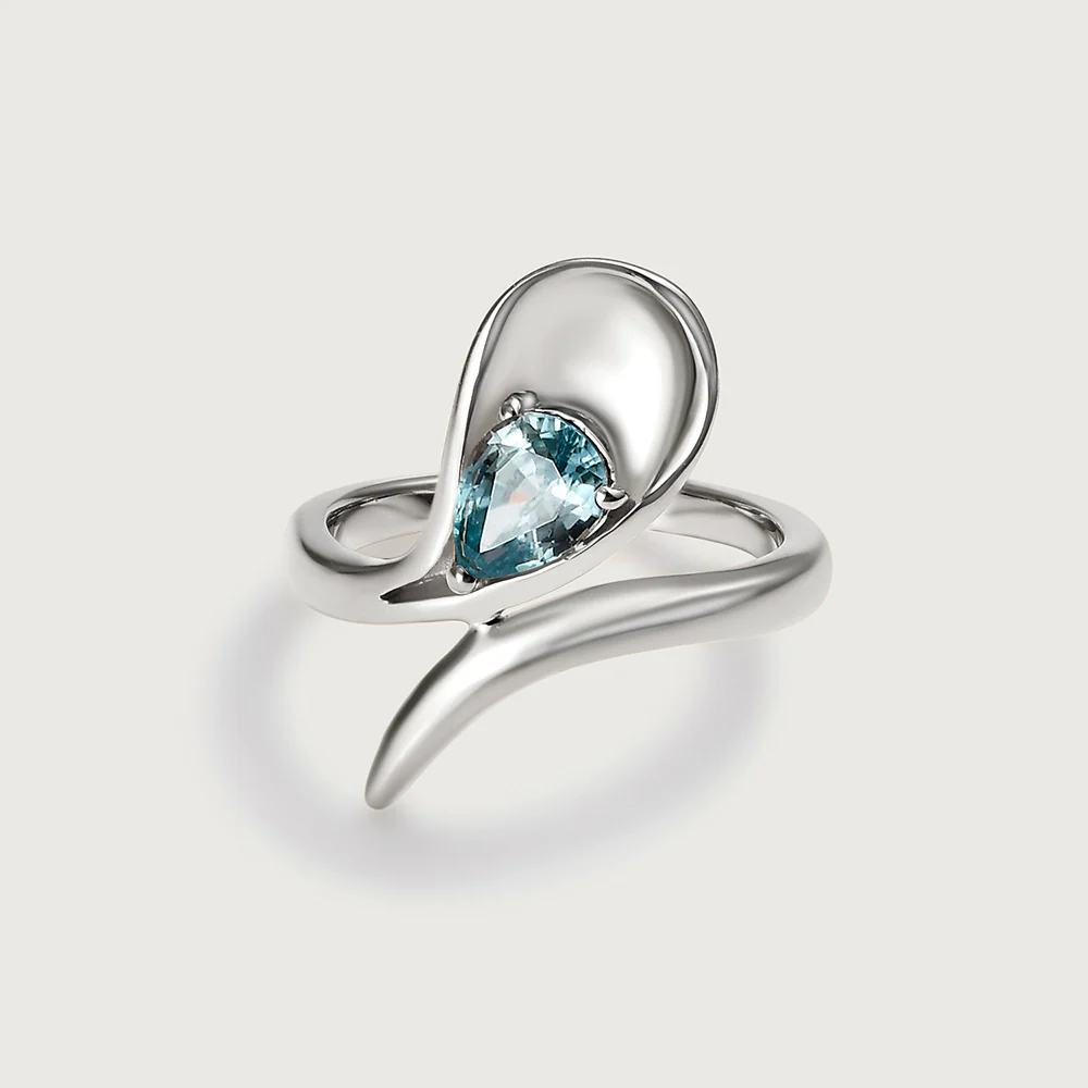 A lovely and simple design that brings you the fluid motion of a wave paired with our gorgeous sandblast texture. The ring is studded with a bright-hued and sparkling Ratankiri blue zircon and the sandblast texture adds wonderfully to the design.
